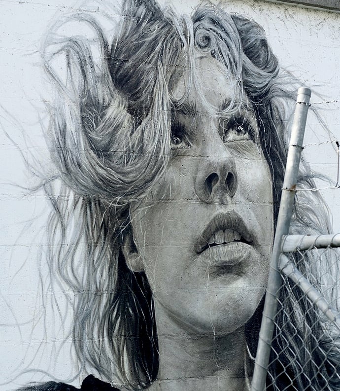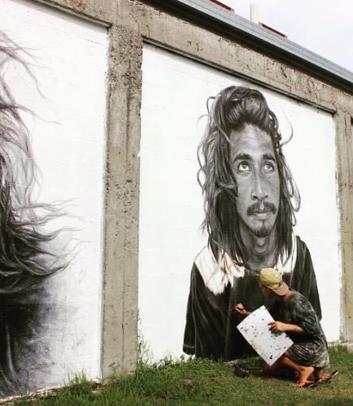 Nine years ago, in Mount Maunganui, New Zealand, these walls were Painted (oil paint on brick). I took pictures of traveler's from the hostel I had been staying in, to create these murals. I painted my subjects mostly gazing up because I wanted to convey hope, which to me meant seeing beyond oneself. These murals are regrettably no longer visible due to a sizeable building next to them; and only have very limited photos myself.